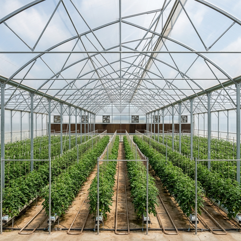 Use greenhouse imagery to ground ventilation, circulation, and cooling decisions in a real controlled-environment setting.